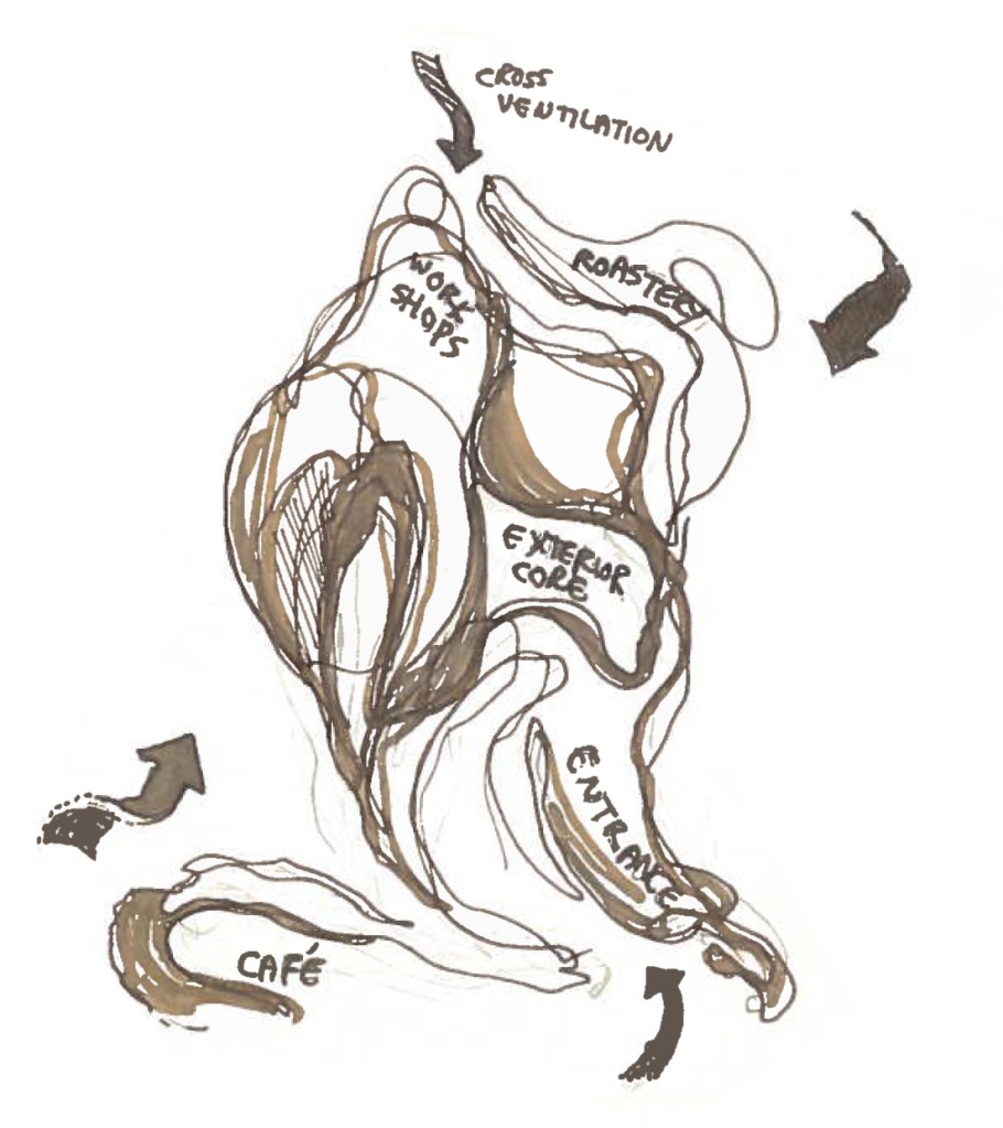 Having identified the coffee house as a significant historic Liverpool dockland congregation point, we sought to update the typology and integrate means of coffee production into the architecture.