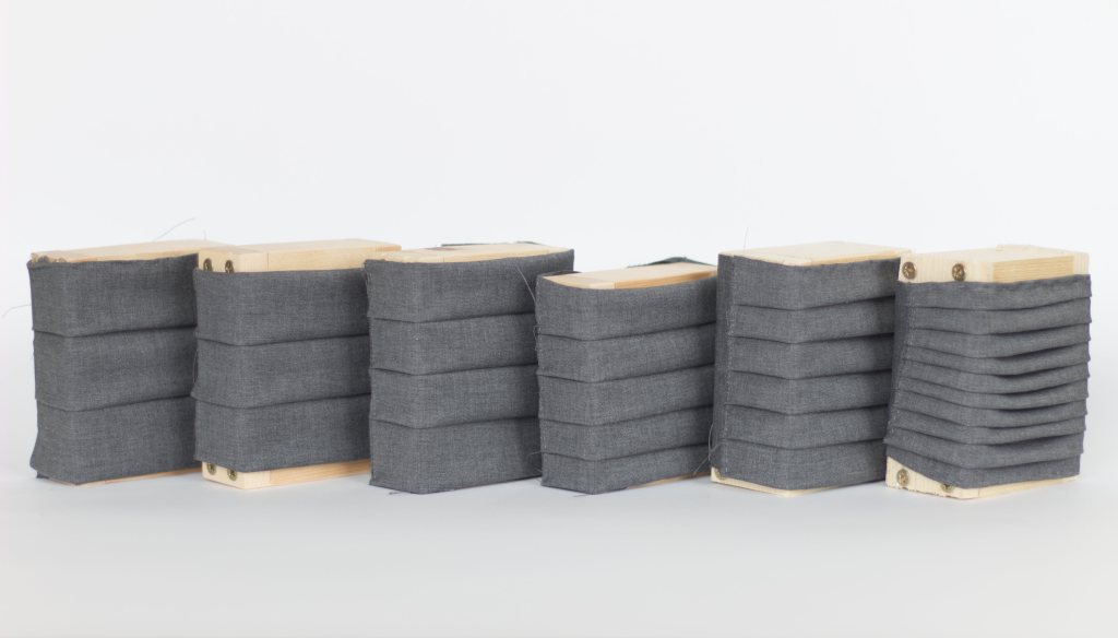 Material experiments tested structure and fabric pleating for facade coverage. The final prototype incorporated varying pleating types and layered materials. The exploded elevation and sections demonstrate the layering process mimicking that of machinery.