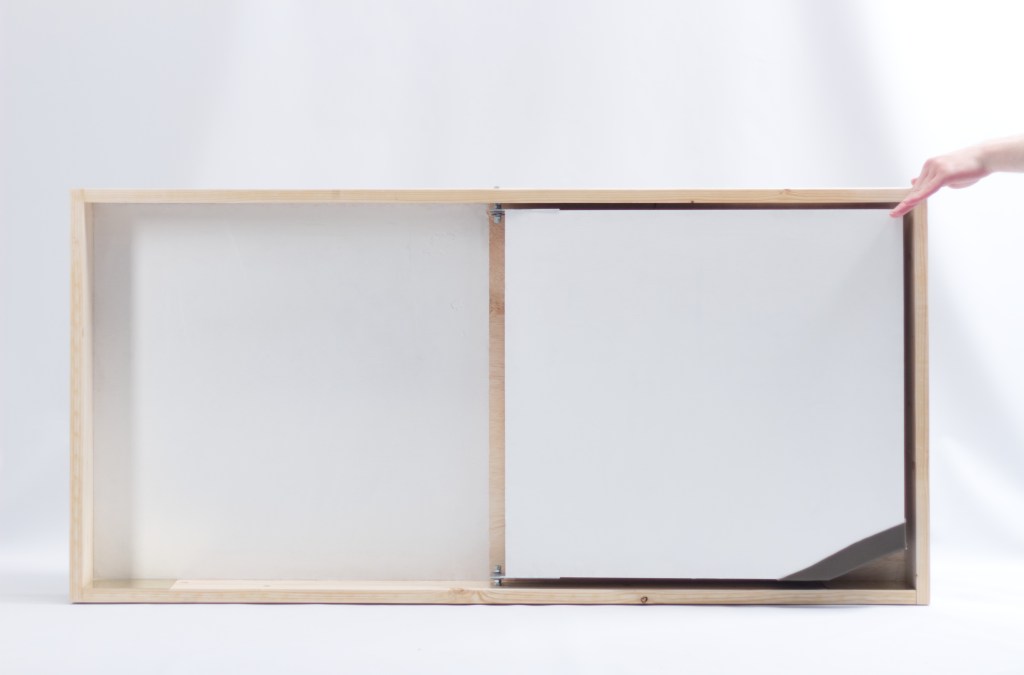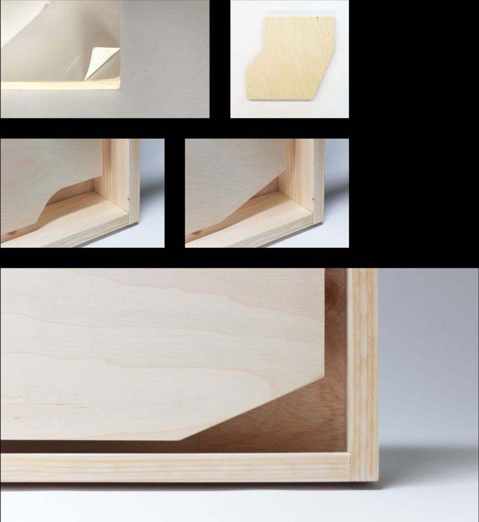 Construction on a full-scale artefact then began, using the same construction method, and including a sheathing board for structural rigidity. On each leaf of the cassette system an acoustic material was used, some absorbing, others reflecting, and others resonating. The system showed some promise as a near-field acoustic adaptive surface.