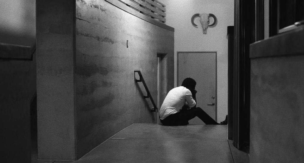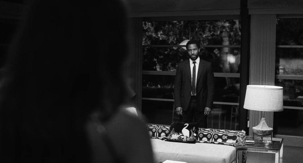In a Netflix interview, director Sam Levinson describes a spatial language whereby actors “move through [the] house in a way that feels like it’s looping and circuitous,” the continual conflict-resolution cycles Malcolm and Marie go through during the film mirrored in this circular, chasing movement. The first of Malcolm’s monologues takes place as he paces endlessly around their sofa, the camera, somewhat dizzyingly, following him back and forth from outside. As the house traps them in circles and structures their interactions, the couple then pursue one another around the kitchen island, and the bar, looping over old arguments and around the house, and going nowhere – physically and metaphorically.